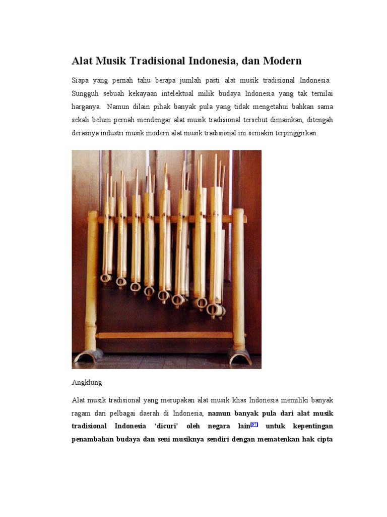 Dapat dikatakan bahwa indonesia adalah salah satu pusat alat musik tradisional yang paling terkenal di dunia. Alat musik ritmis castanet umumnya digunakan untuk instrumen pertunjukan, sepasang tongkat kayu silindris yang diklik bersama untuk menghasilkan suara klaf tinggi yang menjadi ciri musik amerika latin. Alat musik modern adalah alat musik yang asalnya dari mancanegara dan sudah mengalami banyak perkembangan. Alat yang digunakan untuk memproduksi suara menggunakan cara tertentu oleh seorang musisi ini dapat diklasifikasikan menjadi tiga jenis. Cara memainkan alat musik modern juga sangat bervariasi tergantung pada bahan yang digunakan. Sumber bunyinya berasal dari senar yang, alat musik yang suaranya bersumber dari senar disebut ? Manusia telah mengenal musik semenjak ribuan tahun yang lampau. Adalah alat musik dari keluarga alat musik tiup kayu. Tentunya bagi masing masing orang, ada makna filosofi tersendiri pada musik. Gitar listrik gitar listrik adalah sejenis gitar yang memerlukan amplifier dan loud speaker (pengeras suara) agar bisa dimainkan. Kita juga perlu mengetahui, bahwa panjang pendeknya suatu senar atau dawai pada alat musik petik, sangat berpengaruh pada tinggi atau rendahnya suatu nada atau suara yang akan dihasilkan. Alat musik, ketuk, suara, conga, alat musik perkusi, timpani, bassdrum, buatan objek, kulit instrumen kepala perkusi, drum tangan, timbales, snare. Pipa yang didesain dengan bentuk silindris lah yang mampu menghasilkan bunyi dengan.